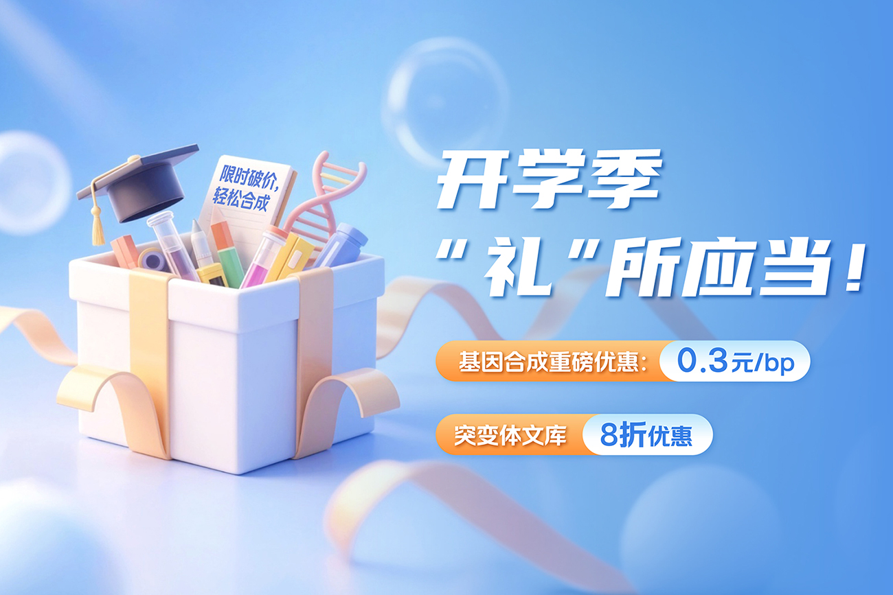 新一产开学季大促:基因合成0.3元/bp,突变文库8折!