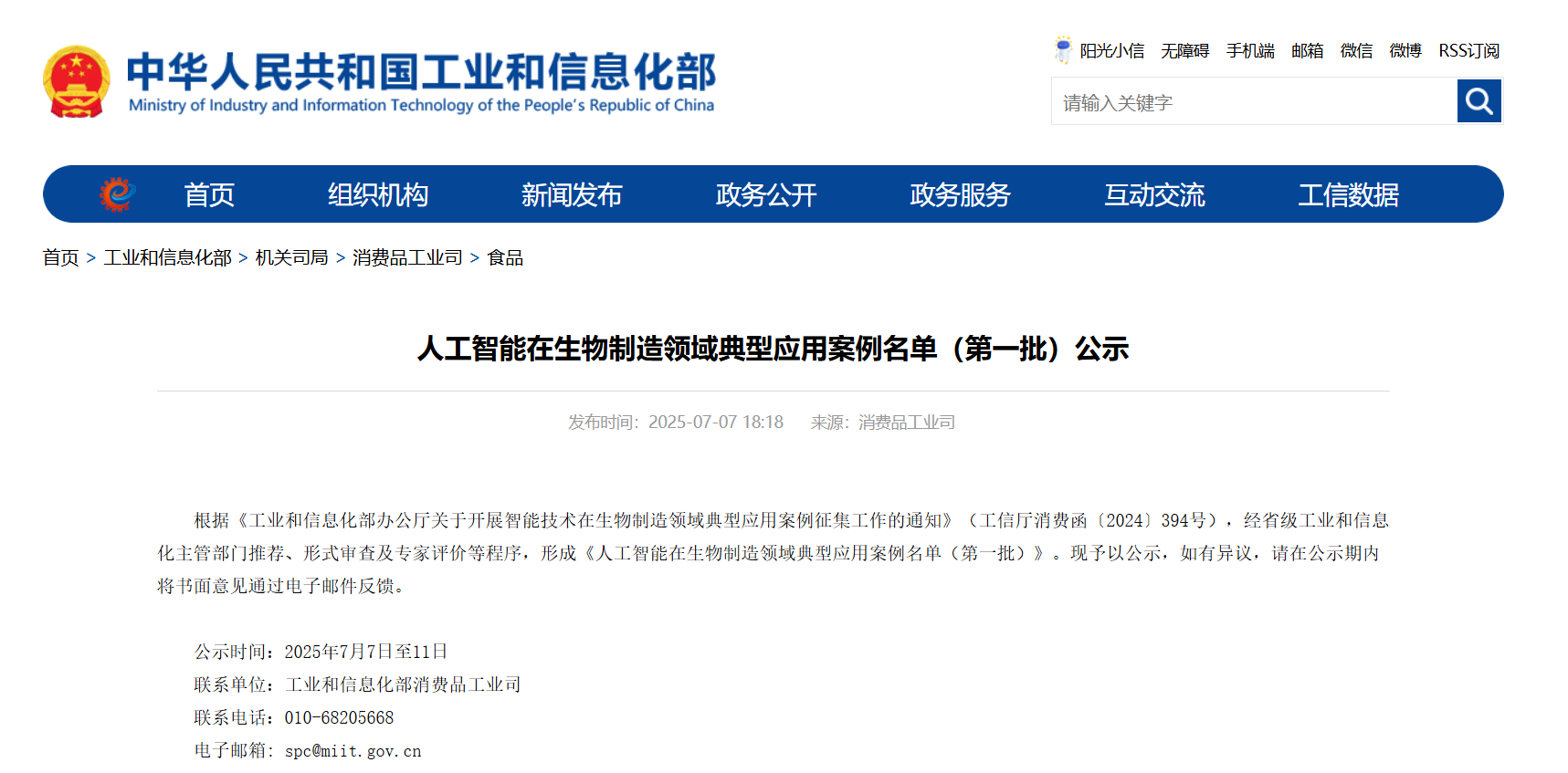 2025年7月7日,中华人民共和国工业和信息化部正式公示《人工智能在生物制造领域典型应用案例名单(第一批)》。华大集团旗下常州新一产生命科技有限公司申报的 “蛋白质智能预测和改造技术实现极端蛋白元件高效挖掘和性能优化” 项目,经专家评审认定为 “典型” 级案例,成为高性能蛋白质元件设计及构建领域的标杆技术!